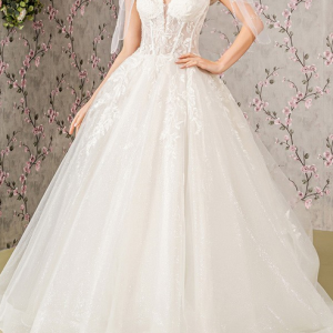 BUSTIER ILLUSION A-LINE WEDDING GOWN WITH GLITTER AND SEQUIN DETAILS