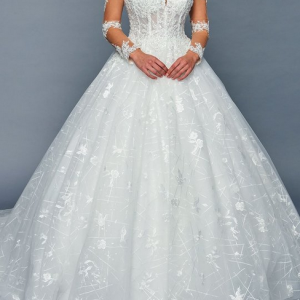 ILLUSION BATEAU NECK LONG SLEEVE A-LINE WEDDING GOWN