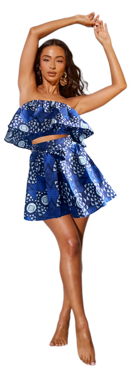 2PC MINI SKIRT AND CROP TOP SET MATCHING SCARF INCLUDED