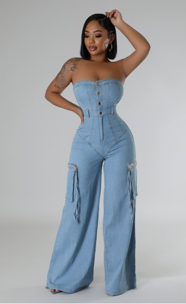 STRAPLESS DENIM JUMPSUIT
