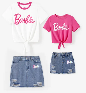 MOMMY AND ME BARBIE LOGO PRINT DENIM SKIRT SET WOMAN