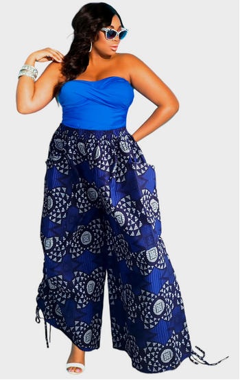 PLUS SIZE PALAZZO PANTS WITH ADJUSTABLE LEG STRING MATCHING SCARF INCLUDED